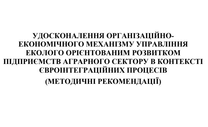 УДОСКОНАЛЕННЯ ОРГАНІЗАЦІЙНО-ЕКОНОМІЧНОГО МЕХАНІЗМУ УПРАВЛІННЯ ЕКОЛОГО ОРІЄНТОВАНИМ РОЗВИТКОМ ПІДПРИЄМСТВ АГРАРНОГО СЕКТОРУ В КОНТЕКСТІ ЄВРОІНТЕГРАЦІЙНИХ ПРОЦЕСІВ (МЕТОДИЧНІ РЕКОМЕНДАЦІЇ)